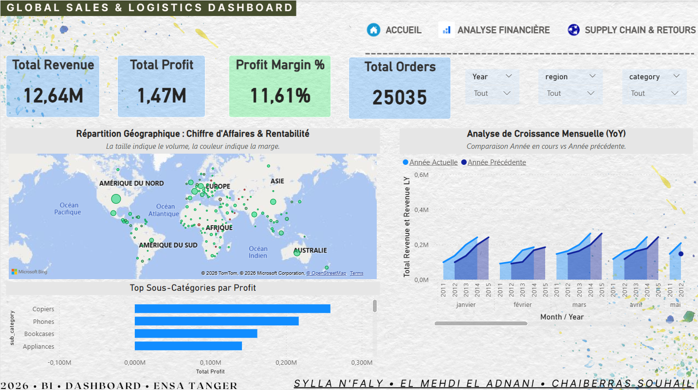 End-to-end Business Intelligence solution analyzing the impact of logistics performance on financial profitability using Talend, PostgreSQL, and Power BI.